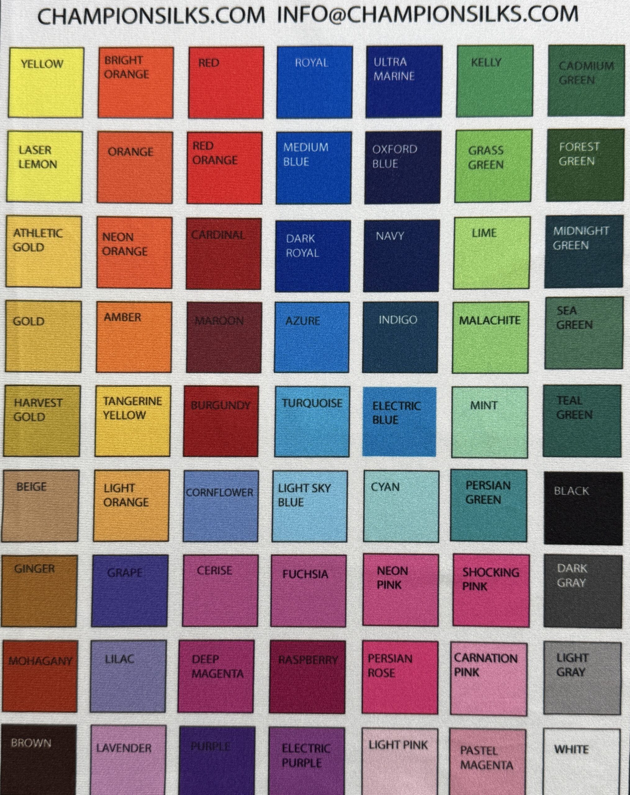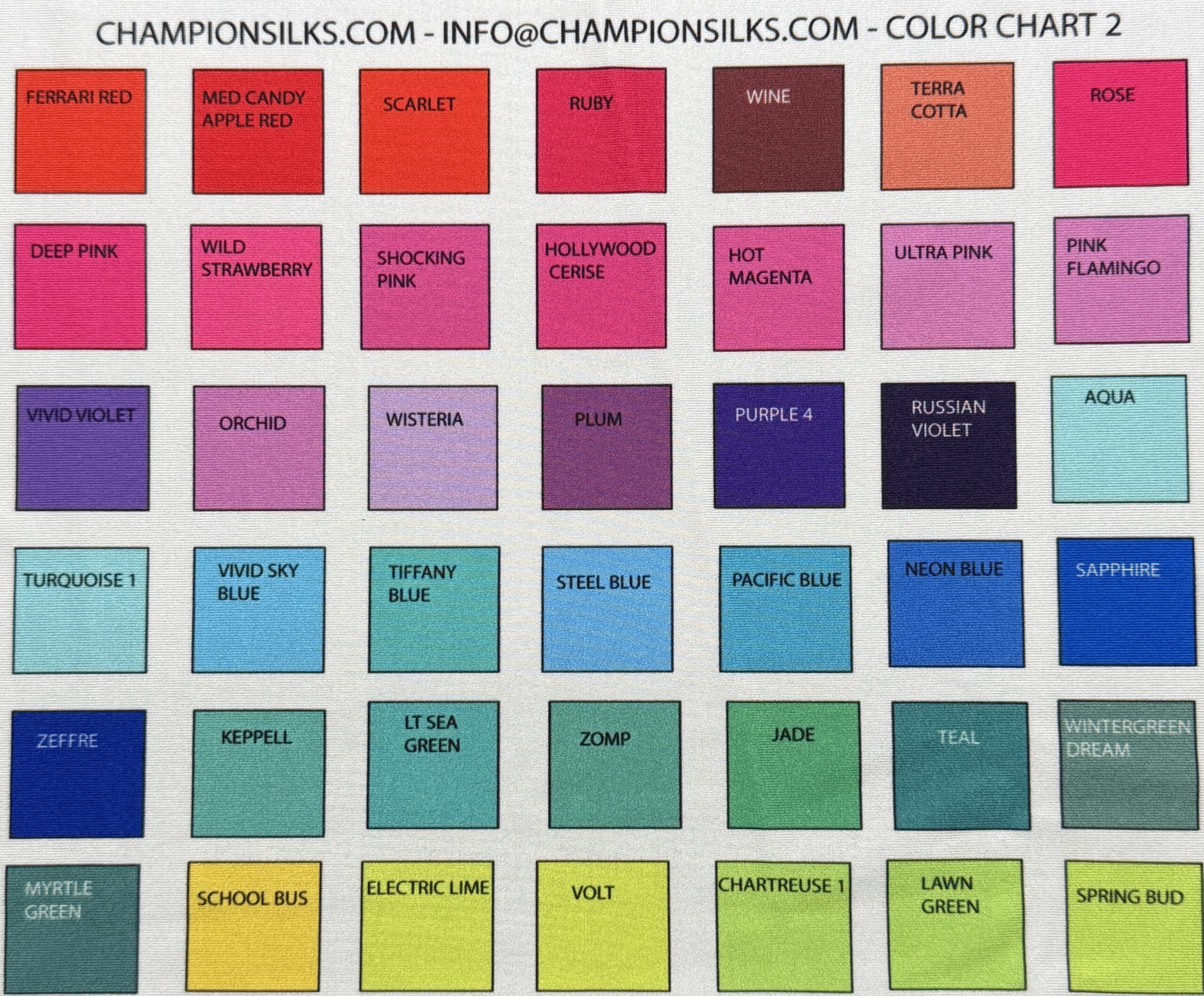 The design tool came prepopulated with limited colors, please see the color charts below for more color options. The swatches below are what the colors look like when printed on the fabric for a more realistic idea of how the colors will look on the final product. Please keep in mind that colors will look a little different on different monitors.